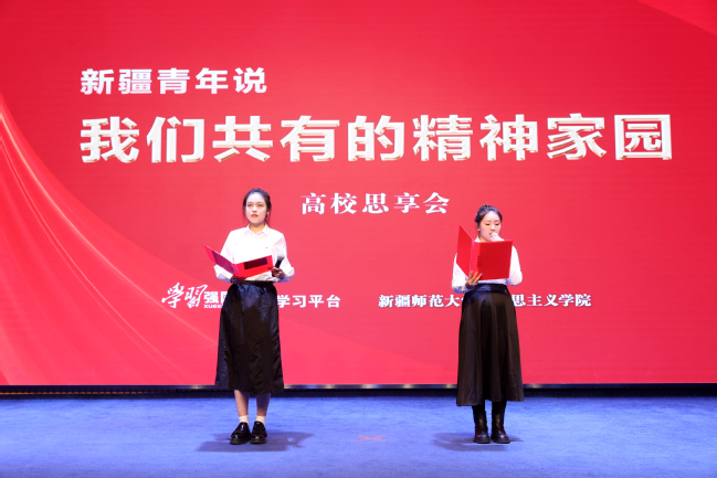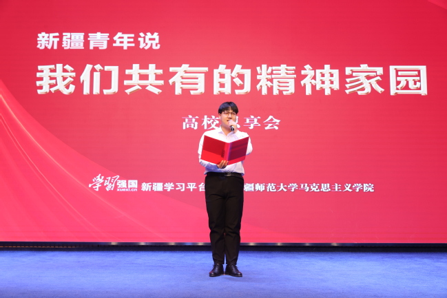 思享会上,我校马克思主义学院学子与青年教师与全场师生诵读分享了三篇习近平总书记的重要讲话和回信精神及新闻报道,随后用六个身边故事,向在场观众生动展现了新时代新疆的变化与发展。