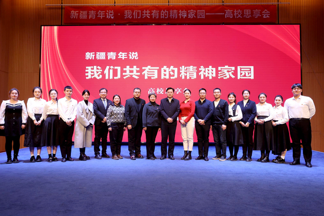 怀揣中国梦,共筑新征程。12月15日,由“学习强国”新疆学习平台与我校马克思主义学院联合举办的“新疆青年说·我们共有的精神家园”高校思享会在温泉校区后勤楼二楼道德讲堂举办。校党委常委、宣传部部长高靖,“学习强国”自治区党委宣传部讲师团干部阿依苏丽坦·艾克热木,“学习强国”新疆学习平台编辑部主任巴立,我校马克思主义学院党委书记张峥,党委副书记、纪委书记吴常柏以及辅导员、2023级本科生参加本次活动。