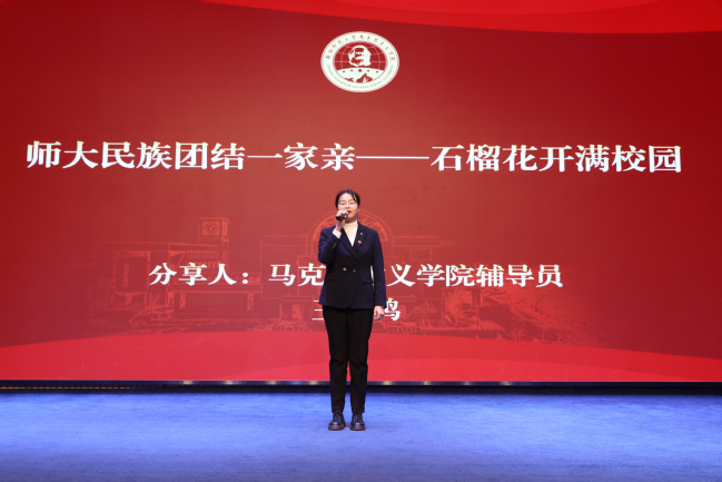 在我们新师大的校园里,同样能看到民族团结一家亲的真实写照。青年教师王梦鸽说:“学校汇集了来自全国各地各个民族的学生。学校坚持把铸牢中华民族共同体意识贯穿立德树人全过程,从知识传授、文化浸润、实践锻炼、机制创新四个维度,构建铸牢中华民族共同体意识教育体系,培养爱国爱疆担当奉献的时代新人。”