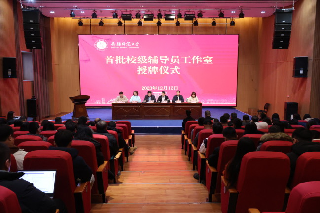 12月12日,首批校级辅导员工作室授牌仪式在新疆师范大学温泉校区后勤二楼报告厅举行。校党委常委、宣传部部长高靖,校团委书记陆娇,党委组织部副部长陈华东,学生处领导班子及全体辅导员参加活动,活动由学校学生工作部(处)处长张进主持。