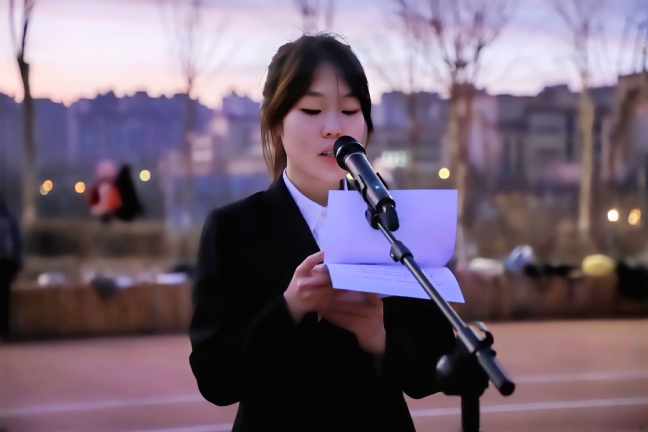 在宪法晨读环节,全体师生跟随工作人员诵读宪法部分条款,让宪法“声”入人心,引领在场师生用心体会宪法的庄严与神圣,自觉做宪法的忠实崇尚者、自觉遵守者和坚定捍卫者。