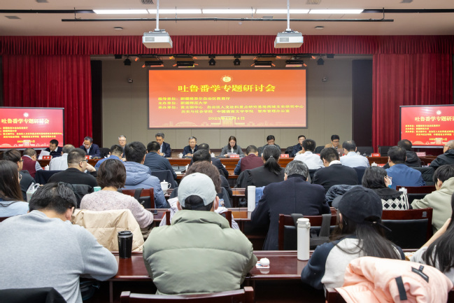 12月4日,吐鲁番学专题研讨会在新疆师范大学顺利召开。自治区党委宣传部、自治区教育厅、吐鲁番市委有关部门的负责同志参加会议。自治区党委教育工委副书记、教育厅党组副书记、厅长祖力亚提·司马义到会并致辞。新疆师范大学党委书记葛国致欢迎词。会议邀请了来自故宫博物院、中国人民大学、中山大学、武汉大学、新疆大学、新疆社会科学院、新疆博物馆、新疆文物考古所、新疆文博院、吐鲁番学研究院等高校和研究机构的知名专家作主题报告,并就如何加强新疆吐鲁番学研究进行交流座谈。会议由新疆师范大学党委常委、副校长王世杰主持。