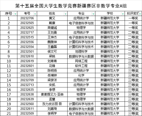 近日,第十五届全国大学生数学竞赛新疆赛区成绩揭晓,我校57名学子喜获佳绩。