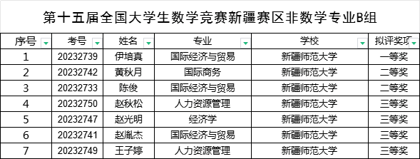 数学专业B组获奖名单
