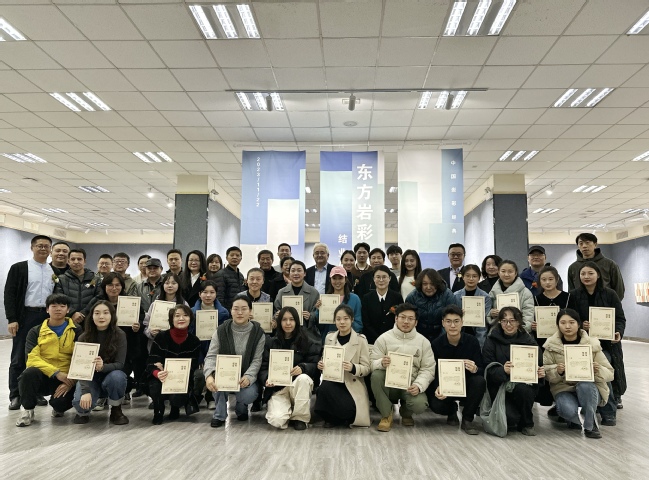 在结业典礼上,陈彤首先对胡明哲教授和岩彩团队教师一个月的辛苦付出表示感谢,他希望各位学员将本次所学运用到今后的教学及艺术创作中,为增强文化自信、铸就新时代美术高峰贡献力量。同时,他强调要借助自治区名师工作室的平台,使中央美术学院与新疆师范大学有更多形式的合作。