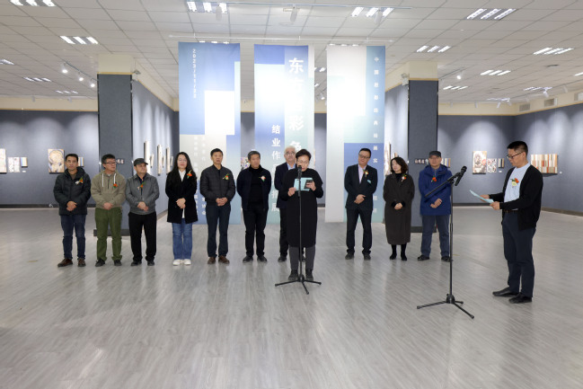 11月22日,由新疆美术家协会主办,我校美术学院承办,自治区名师工作室协办的《东方岩彩·龟兹面壁》中国岩彩经典绘画实践课程高级研修班顺利结业。校党委常委、副校长陈彤,新疆文学艺术界联合会党组成员、副主席、新疆美术家协会主席郐振明,新疆艺术学院院长、新疆美术家协会副主席莫合德尔·亚森,中央美术学院实验艺术系教授、中国美术家协会综合材料绘画艺术委员会副主任胡明哲教授,新疆美术家协会主席团成员,新疆高校相关负责人及全体学员近200人出席结业典礼。结业典礼由新疆美术家协会副主席、名师工作室主持人、我校美术学院院长李勇教授主持。