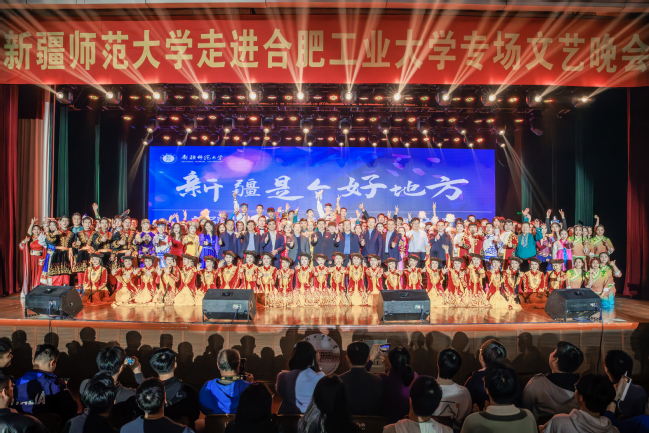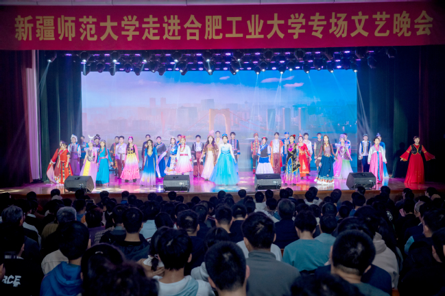 当晚的演出在合肥工业大学大学生艺术团合唱队的合唱《看山看水看中国》中拉开序幕。新疆师范大学师生带来的舞蹈《刀郎麦西来甫》《帕米尔之情》《骏影追风》《黑走马》《朱拉》交替登台,绚丽的灯光和曼妙的舞姿让观众体验了新疆不同民族的风情;歌曲《领航》《吐鲁番的葡萄熟了》《阿娜尔汗》《七月的草原》《巴郎仔》《长调情》时而意蕴悠远,时而热烈互动,让观众的心绪随着音乐舞动;器乐演奏《父亲赞》《乌鲁木齐的天空》《昆仑之春》《喜洋洋》《帕米尔,我的家乡多么美》《好日子》《金蛇狂舞》等曲目则弹奏出新疆新老交织的崭新篇章;合肥工业大学的同学还用舞蹈《禾·梦》表达了对袁隆平院士的思念。晚会最后,一曲《我们新疆好地方》点燃全场,演员们纷纷走下舞台与大家一同载歌载舞,晚会在热烈氛围中圆满落下帷幕。