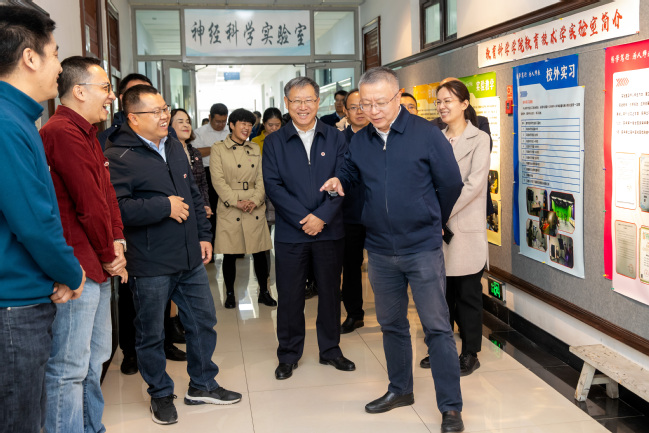 调研组一行实地走访我校心理学实验中心、教育技术学实训室、中华优秀传统文化传播实践基地、新疆北鲵研究室和国家级国际联合中心“新疆特殊环境物种保护与调控生物学实验室”,听取学校学位管理与研究生教育、教育专业学位研究生培养和“师范教育协同提质计划”等方面的工作汇报。任友群对我校在学科专业建设方面取得的成绩给予了充分肯定,提出了进一步提升我校研究生高质量培养、高成效服务于地方经济社会发展的指导意见。葛国表示,学校将进一步发挥学科专业优势,通过援疆高校助力、国内外高校合作等渠道,进一步做好学校学位管理与研究生教育工作,持续服务新疆发展战略。