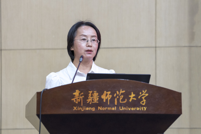 孙秀玲作了题为《深刻把握习近平文化思想推进文化润疆》的报告,从三个维度阐释和分析文化润疆工作。她强调,文化润疆工作要坚持系统思维,注重引领思想、抵达心灵、凝聚力量、坚持底线思维,增强忧患意识,提高对意识形态领域的风险的研判与处理,切实解决各种深层次矛盾和问题,努力实现新疆社会稳定和长治久安。