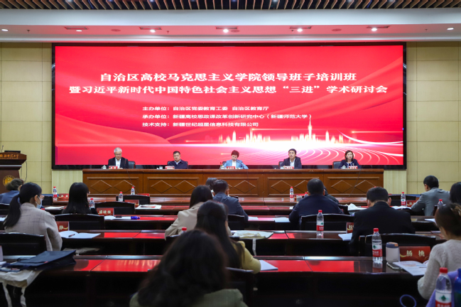 为深入学习贯彻党的二十大精神,全面贯彻落实习近平总书记关于办好高校思政课的系列重要讲话和重要指示批示精神,推动思政课改革创新,扎实推进习近平新时代中国特色社会主义思想“三进”工作,10月28日上午,由自治区党委教育工委、自治区教育厅主办,新疆高校思政课改革创新研究中心(新疆师范大学)承办的习近平新时代中国特色社会主义思想“三进”学术研讨会在我校召开。自治区党委教育工委思政处副处长陈金花,教育部马克思主义理论教育指导委员会委员、新疆师范大学副校级领导、马克思主义学院学术院长孙秀玲教授出席会议并致辞。