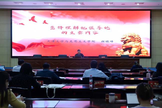 教育部高校思政课总教指委副主任委员、天津大学马克思主义学院院长、博士生导师颜晓峰教授以《怎样理解把握导论的主要内容》为题作报告。他从“怎样理解习近平新时代中国特色社会主义思想创立的时代背景”等六个方面,指出思政课老师要把教材体系作为科学体系的一种理解和概括,坚持理论性和思想性并重,帮助学员整体把握和深刻理解《习近平新时代中国特色社会主义思想概论》课的导论内容。