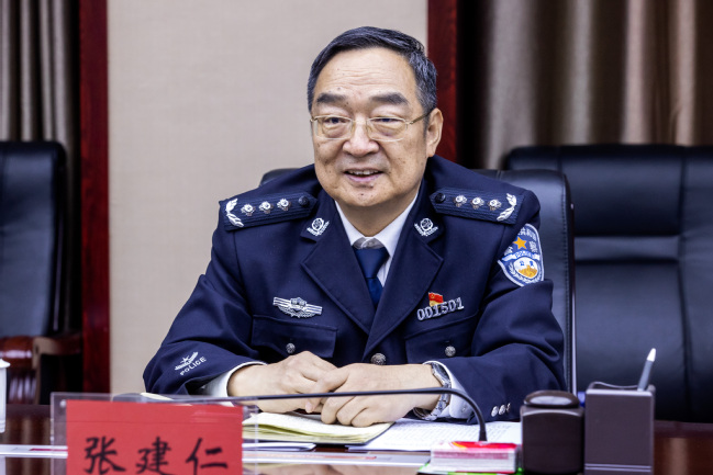 自治区公安厅党委委员、新疆警察学院党委书记张建仁在座谈中讲话