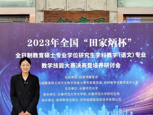 2023年全国教育硕士专业学位研究生学科教学(语文)专业教学技能大赛决赛于10月14日在长春师范大学举行,2022级学科教学(语文)专业学生吴明珠获得三等奖。