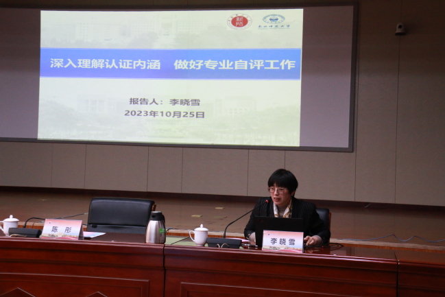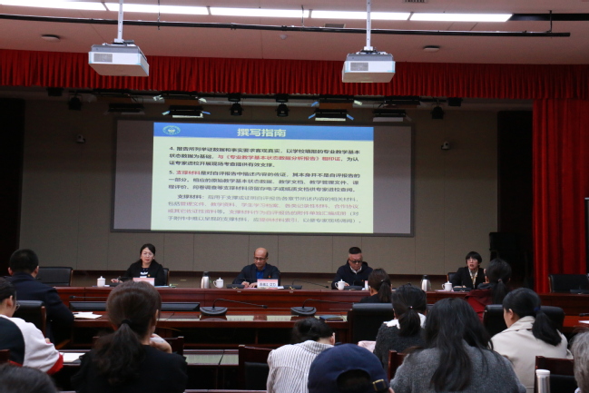 路俊哲就开展师范专业认证的重要性、紧迫性以及认证工作中各部门、各学院的分工进行了说明。教学质量监测与评估中心主任李晓雪进行了“深入理解认证内涵,做好专业自评工作”的专题培训,围绕理解专业认证理念内涵、抓住认证主线和底线、撰写专业认证自评报告和对标开展专业自评自建等四个方面进行了培训。