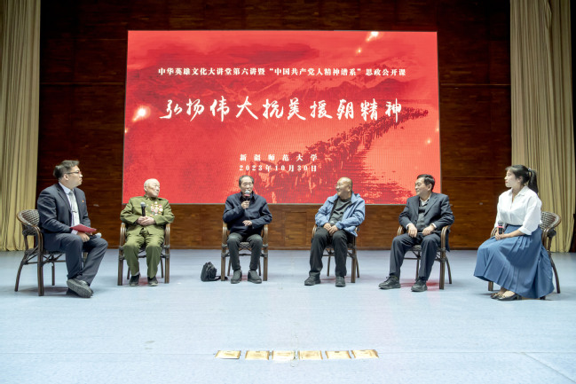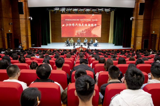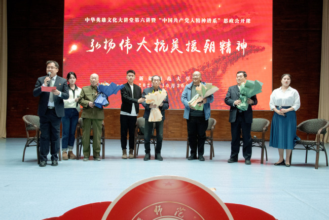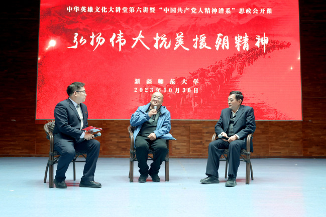 为深入学习贯彻习近平新时代中国特色社会主义思想,铭记抗美援朝伟大胜利的不朽功勋和进步意义,进一步弘扬英雄文化、培育新时代青年家国情怀,为奋进新征程注入强大正能量,10月30日晚,我校举办《缅怀革命先烈英雄壮举 弘扬伟大抗美援朝精神》中国共产党人精神谱系思政公开课活动,特邀彭德怀元帅侄孙彭宇先生,中国战略与管理研究会志愿军研究会常务副会长肖平,志愿军老战士狄占先、李荣甫做客我校,讲述抗美援朝的光辉历史和志愿军战士的英雄故事。校党委书记葛国及全体在家校领导出席访谈活动,600余名师生代表现场聆听访谈。