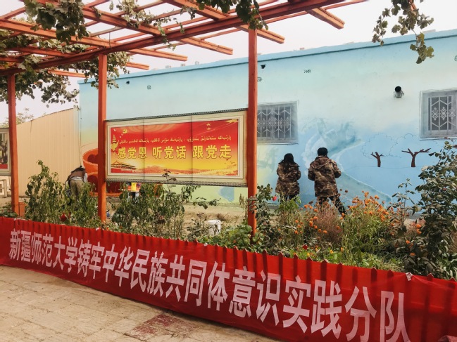图为新疆师范大学铸牢中华民族共同体意识实践分队