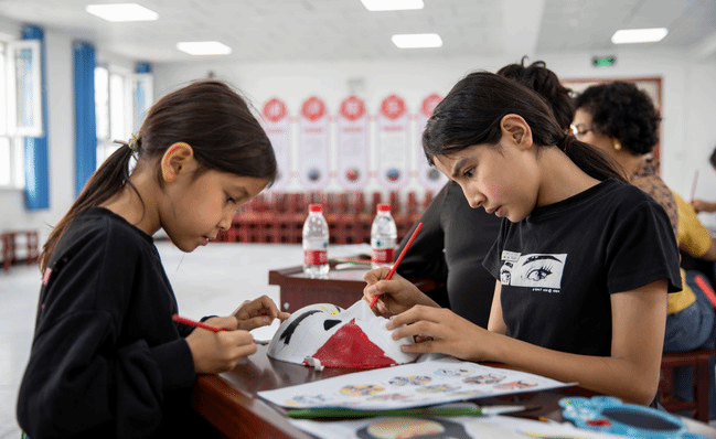 图为2022年9月新疆师范大学社会工作实践团队前往克州文化路社区开展“‘国粹’里的中国——绘脸谱”活动