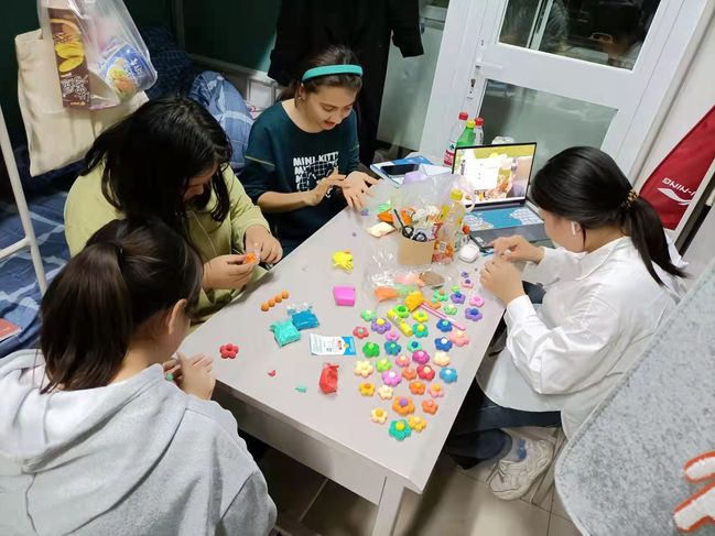 图为历史与社会学院“三好宿舍”2号楼509宿舍学生共同装饰宿舍