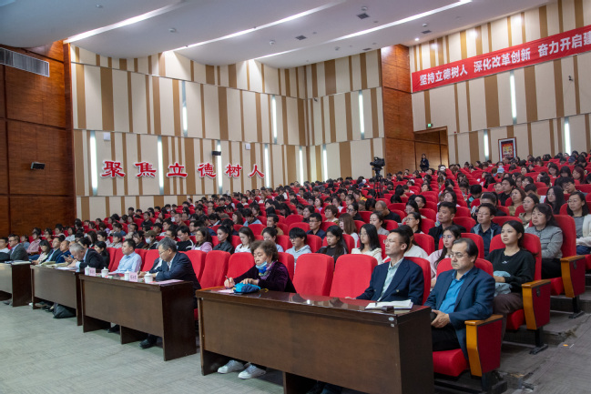 自治区第十届、十一届人大常委会副主任、党组副书记、第六届中国老科学技术工作者协会副会长、自治区科协名誉主席、新疆老科协会长张国梁,中国老科协副秘书长、中国科协创新战略研究院副研究员张艳欣,新疆老科协副秘书长姚红,新疆师范大学党委书记葛国以及我校各学院负责科研工作的领导、教师、新进博士代表,行政机关教师代表,商学院、教育科学学院、生命科学学院、数学科学学院、心理学院等学院的500余名学生代表聆听讲座。