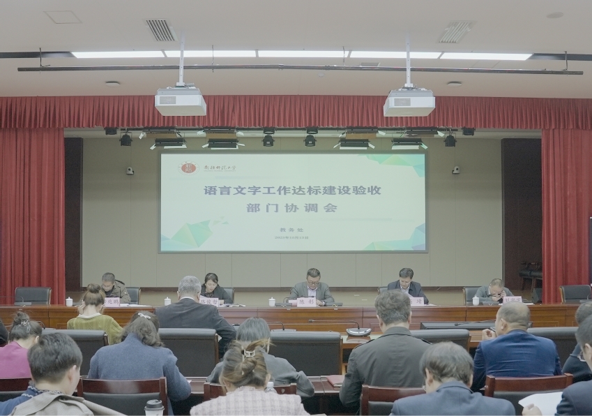 为迎接自治区教育厅对我校语言文字工作达标建设验收,10月13日下午,我校组织相关职能部门及各学院领导召开了验收工作协调筹备会。校党委常委、副校长陈彤,校党委常委、宣传部部长高靖出席会议,教务处处长路俊哲主持会议。