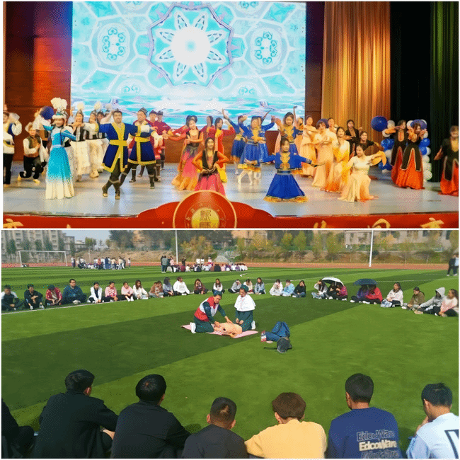 数学科学学院承办了我校新生急救知识和技能普及培训,提高学生急救能力和应急准备水平,确保在出现自然灾害或学生身体疾病时,能够最大限度挽救生命和减少伤亡。物理与电子工程学院举办“迎新杯”篮球赛暨院队纳新活动,让新生在运动中建立了深厚的友谊,为打造良好班级建设工作打下坚实基础。计算机科学技术学院组织学生实地参观了博物馆、烈士陵园、科技馆和马克思主义学院党史学习教育基地,让新生接受爱国主义教育和革命传统教育,将铸牢中华民族共同体意识教育根植于心灵深处。地理科学与旅游学院通过开展温泉、昆仑校区半日游活动,让新生熟悉学校环境,深入了解学校发展历史和育人理念,并前往地理科学与旅游学院试验田开展劳动教育,感受丰收的喜悦。化学化工学院为做好新生资助工作,开展了“育心扶志”勤工助学岗选拔活动,实验教学中心老师们与新疆消防总队消防员、安全监察员一起在数字化创新实验室完成了新生实验室安全教育网络直播活动。
