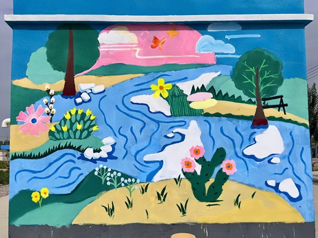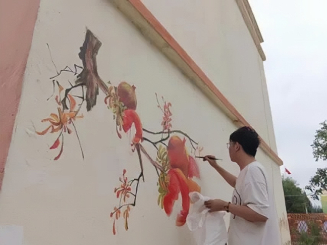 2019年暑假起,在新疆“同一片蓝天下”教育实践团基础上,增加“青春心向党 建功新时代”助力“访惠聚”社会实践团,坚持文化润疆,以文铸魂,增强各族群众对中华民族的认同感、归属感和自豪感。实践团融入中华优秀传统文化,开展“‘绘’聚乡村,‘墙’新时代”活动,按照“一墙一风景、一墙一阵地、绘制一幅墙、影响一群人”的构思,为我校驻村工作队进行墙绘,加强民族团结,增强文化认同,积极推动铸牢中华民族共同体意识。