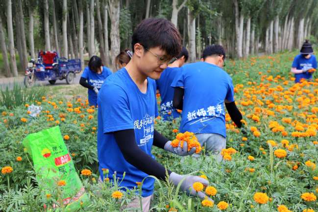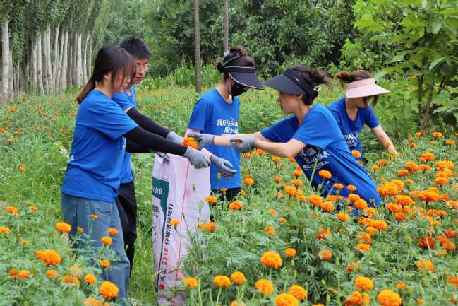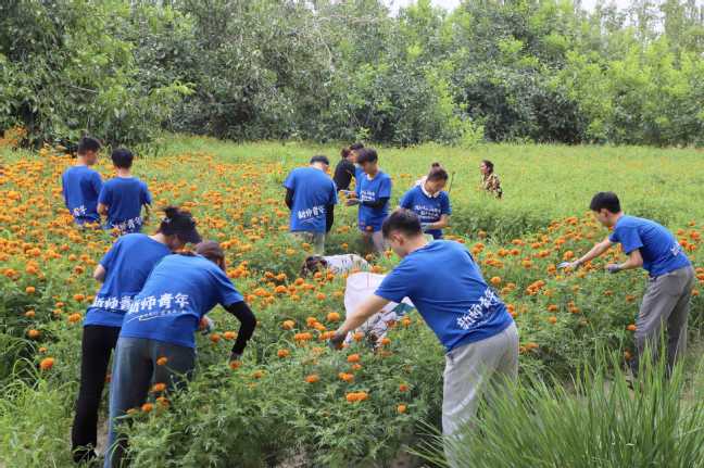 实践团采摘万寿菊