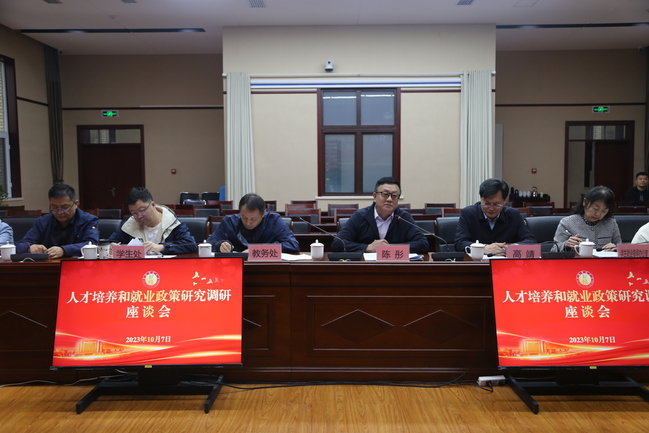 陈彤对北京师范大学课题调研组一行来我校调研指导工作表示热烈欢迎,并向调研组汇报了我校人才培养和就业工作。座谈会上,各职能部门、学院同志结合实际分别作了工作开展情况介绍,并与调研组一行进行了讨论交流,同时,教育科学学院、外国语学院、生命科学学院、马克思主义学院、数学科学学院、商学院的学生代表与调研组成员进行了交流。