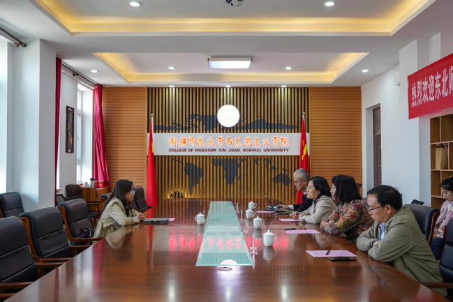 东北师范大学对口支援共建新疆师范大学马克思主义学院座谈会上,双方就大中小思政课一体化备课、高层次人才引进支持、手拉手集体备课、师资培养、党建+学科、党建+管理等方面进行了深度交流,达成了初步共识。双方表示将以此次会议为契机,继续加强交流合作,助力新疆师范大学马克思主义学院内涵式发展,逐步推动两校马克思主义理论学科共同进步。东北师范大学马克思主义学部常务副书记孔洁珺,新疆师范大学马克思主义学院党委副书记、院长张丽娟,副院长罗志佳、孙健,马克思主义理论学科带头人徐国松教授及部分青年教师参加了座谈会。
