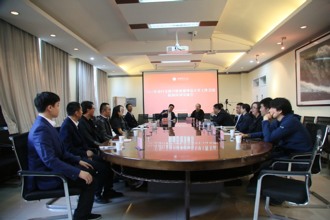 10月9月下午,中国科学技术大学、大连理工大学、华东师范大学、陕西师范大学等教育部指定对口支援高校以及天津大学、中央民族大学、武汉理工大学、合肥工业大学、华中师范大学、东北师范大学、西安外国语大学、五邑大学等合作共建高校,与我校职能部门、相关学院在两校区同步举行座谈。座谈会上,双方全面总结工作成效,交流工作经验,就下一阶段深入推进对口支援共建重点工作进行充分研讨并达成共识,会议成效显著。