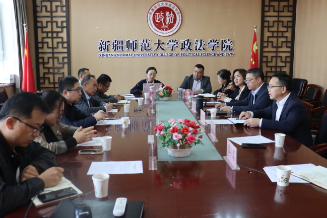 华东师范大学对口支援共建新疆师范大学政法学院座谈会上,双方回顾了以往帮扶取得的各项成效,围绕人才培养、学术合作和学科建设三个方面对未来帮扶合作内容与方向进行了交流。下一阶段,双方将围绕本科教学与研究生教育,进一步凝炼研究方向,按照“一优一特一基”的方针,结合特色学科发展,在交流合作中探索新的合作路径和发展方向,持续帮扶推动新疆师范大学政法学院高质量发展。华东师范大学政治与国际关系学院党委书记潘靓,新疆师范大学政法学院领导班子成员、系主任、学科带头人参加座谈会。