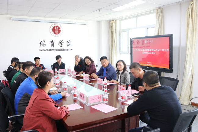 华东师范大学体育学院党委书记黄岚兰、东北师范大学体育学院院长张守伟在国际教育大厦607会议室与体育学院领导班子、各系部主任以及教师代表开展座谈,双方就冰雪运动专业建设、冰雪休闲体育产业与乡村振兴项目选题与研究合作、冰雪项目教师培训与进修、体育学博士点申报、柔性人才引进、师范专业认证等内容进行交流讨论并达成初步共识。