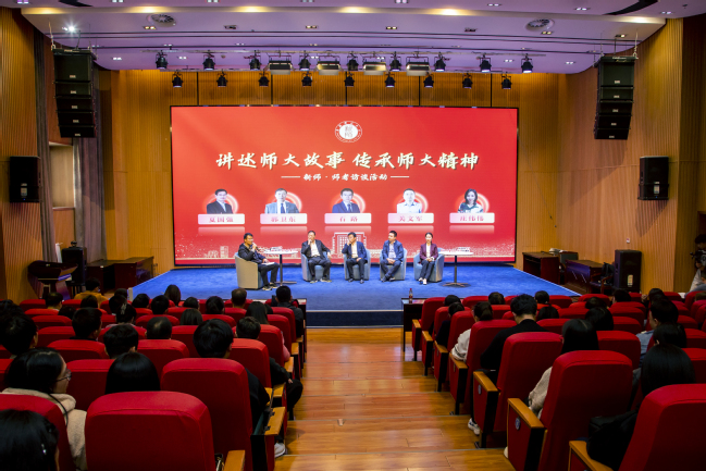 为进一步加强和改进师德师风建设,弘扬教育家精神,增强教师职业道德建设,提升师范生德育涵育能力,激发师生校院责任感与爱校荣校情怀,9月27日下午,人事处(教师工作部)与宣传部联合举办“讲述师大故事 传承师大精神”——新师·师者访谈活动,特邀我校文化润疆研究院原执行院长郭卫东教授、政法学院石路教授、发展规划处副处长关文军教授、生命科学学院庄伟伟教授四位嘉宾,校党委常委、副校长王世杰出席活动,190余名师生代表参加活动。活动由研究生处副处长夏国强教授主持。