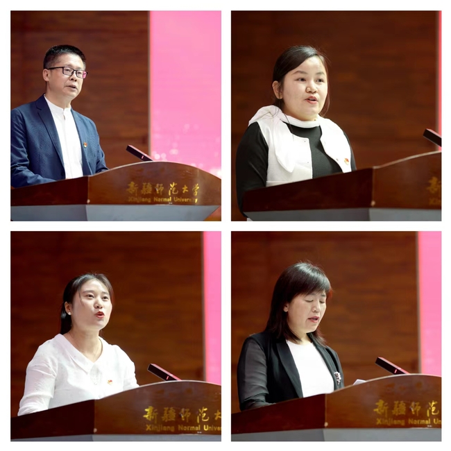 美术学院党委副书记、院长李勇,生命科学学院副院长、教师党支部书记刘彬,马克思主义学院研究生第二党支部书记李杰,教育科学学院本科生第三党支部书记木丽德尔·毛力提作为党务工作者代表分别进行了交流发言,分享了在推进基层党建工作中的经验做法和心得体会。