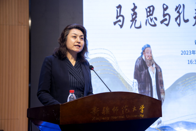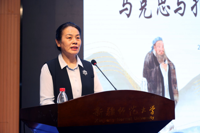 9月22日,我校图书馆协同新疆维吾尔自治区图书馆,邀请山东大学哲学与社会发展学院教授、博士生导师何中华作题为“马克思与孔夫子”的学术讲座。校党委常委、副校长帕力旦·吐尔逊、新疆维吾尔自治区图书馆馆长王曙光、我校图书馆党总支书记马晓利、馆长包瑞出席讲座,各学院师生、图书馆部分馆员共200余人聆听了此次讲座。讲座由新疆维吾尔自治区图书馆信息提供中心主任赵娜主持。