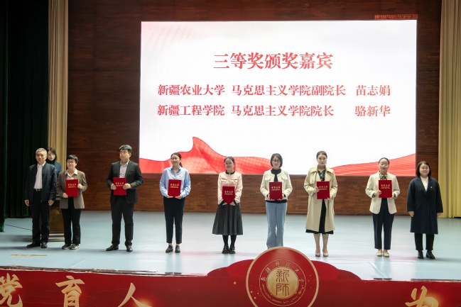 为深入学习宣传贯彻党的二十大精神,把学习贯彻习近平新时代中国特色社会主义思想主题教育不断引向深入,持续推动习近平新时代中国特色社会主义思想进教材、进课堂、进头脑,有效提升自治区高校思想政治理论课(以下简称“思政课”)教师队伍教育教学水平,增强思政课的针对性、有效性。9月23日至24日,由自治区党委教育工委、自治区教育厅主办,新疆高校思想政治理论课改革创新研究中心(新疆师范大学)承办,新疆农业大学、新疆工程学院、新疆职业大学、昌吉学院协办的自治区第五届高校思想政治理论课教学展示活动决赛及颁奖仪式顺利举办。