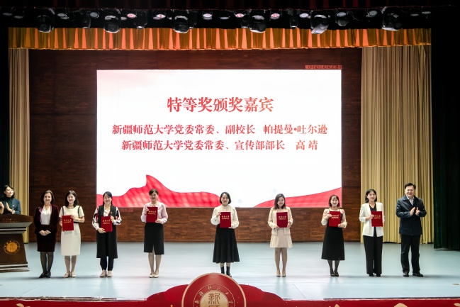 帕提曼•吐尔逊为颁奖仪式致辞。她指出,我校作为本次活动的承办单位,长期聚焦立德树人根本任务,深化科学研究、优化师资队伍、强化重点马院建设的政策支撑,将学科建设与改革创新和人才培养结合起来,用高水平研究成果服务思政课发展,之后也将继续秉持初心,为思政课的创新提供扎实理论支撑。