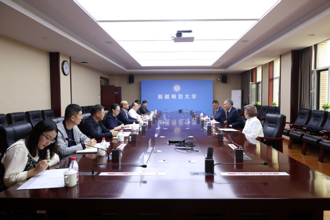 9月15日,吉尔吉斯斯坦奥什国立大学副校长库班内齐·托克托洛夫、吉尔吉斯斯坦比什凯克第69中学校长阿塔耶娃·萨依拉古丽、吉尔吉斯斯坦国立民族大学孔子学院外方院长苏拉伊马诺夫· 马塞尔别克一行来我校访问。校党委副书记、校长吾满江·艾力,党委常委、统战部部长关明出席会谈并陪同参观,研究生处、教务处、科研处、人事处、国际合作与交流处、国际文化交流学院等有关单位负责人参加会谈。