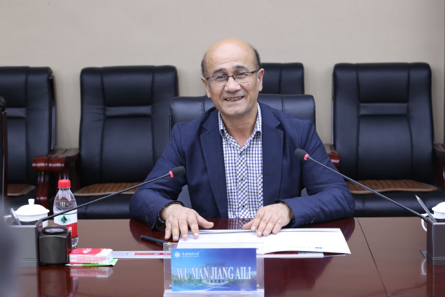 吾满江·艾力对各位外宾的来访表示欢迎。他介绍了我校近年来的发展及与中亚地区高校等机构开展的教育交流与合作情况。他希望以本次会谈为契机,推动中吉校际在人才培养和学术研究等方面开展更多样化的交流与合作,期待双方以人文交流为纽带,促进中吉文明交流互鉴与民心相通,助力“一带一路”友好合作取得更加丰硕的成果。
