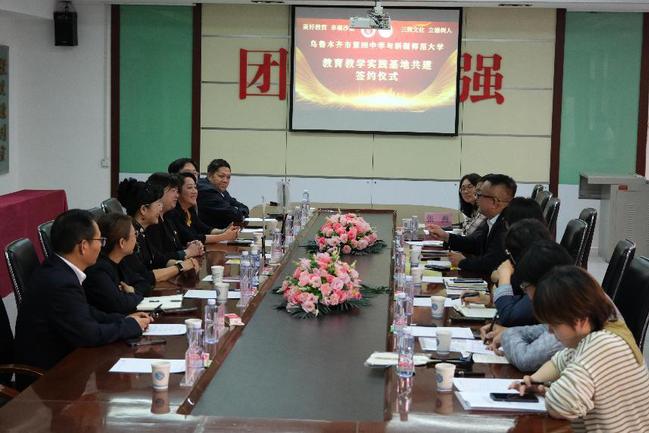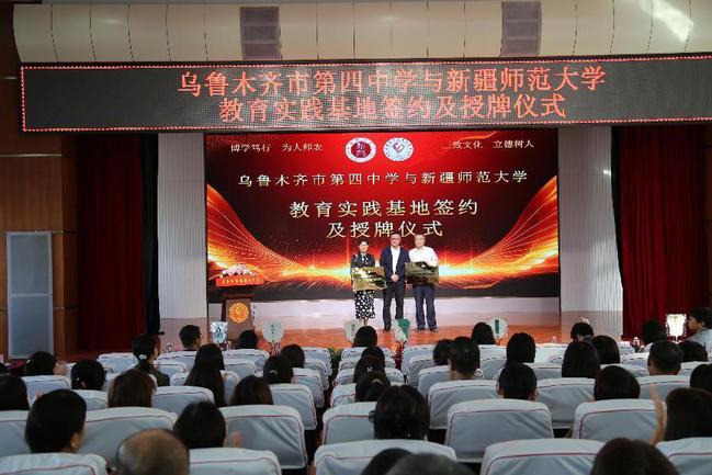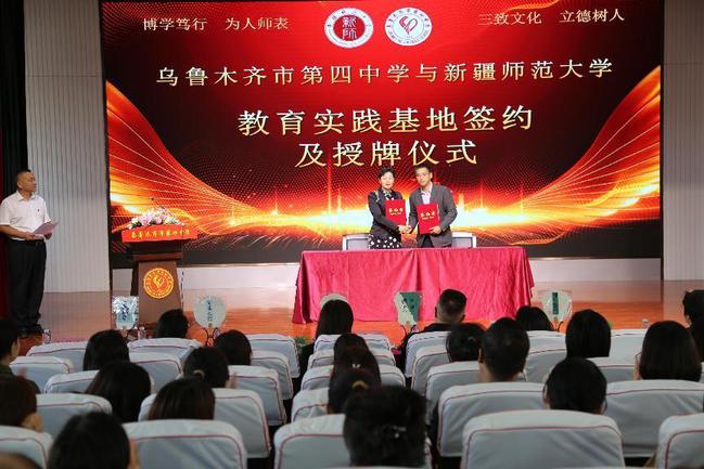 为构建高质量本科生、研究生教育体系,提升我校“卓拔培优计划”卓越师范生和研究生教师教育类专业人才培养质量,9月13日,我校与乌鲁木齐第四中学举行了共建本科生、研究生教育实践基地签约授牌仪式。校党委常委、副校长陈彤,沙依巴克区副区长周志娟,沙依巴克区政协副主席、区教育局党组书记宋立英出席活动,学校研究生处、教务处负责人、相关院系领导陪同参加。