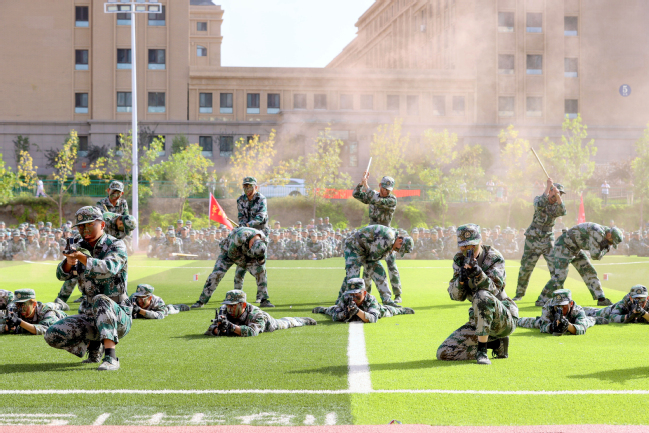 会上,参训学生进行了分列式、格斗术、刺杀操和单兵战术汇报表演,同学们斗志昂扬、精神饱满、杀声震天,充分展现了军训成果。大会还对在军训工作中涌现出的8个先进集体、18个先进班级、18名优秀辅导员、97名优秀教官、269名训练标兵进行了表彰奖励,并向承训部队赠送了锦旗。