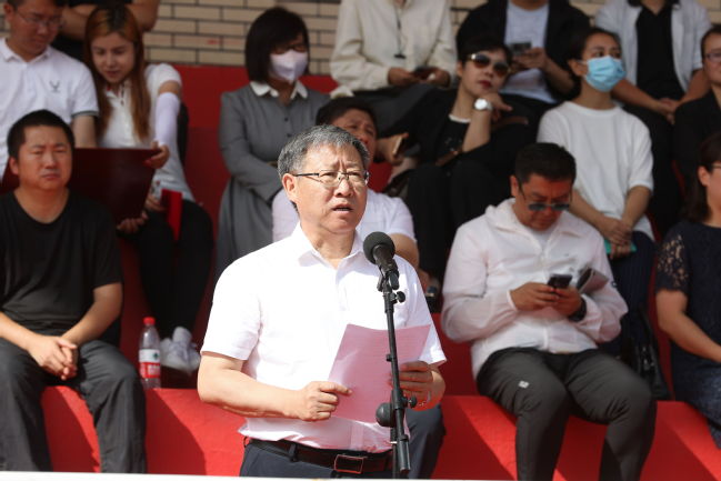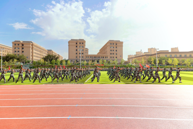 校党委副书记、校长吾满江·艾力在昆仑校区作讲话。他对同学们在军训中的优良表现给予了充分肯定,要求同学们把军训中练就的好传统、好作风带到今后的学习生活中去,努力提升自己的综合素质,认真学习本领,敢于担当,乐于奉献,脚踏实地,顽强拼搏,将青春奋斗融入党和人民的伟大事业,努力成为社会主义事业的建设者和接班人。