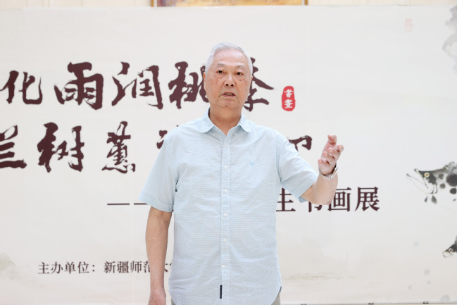 为深入实施文化润疆工程,加强校园文化建设,提升美育工作水平,在学校喜迎45周年华诞之际,9月4日上午,由学校主办、校友会办公室承办的“春风化雨润桃李 滋兰树蕙谱丹心——欧阳铮先生书画展”开幕式在我校温泉校区图书馆隆重举行。校党委副书记王志勇,校党委常委、宣传部部长高靖出席开幕式。