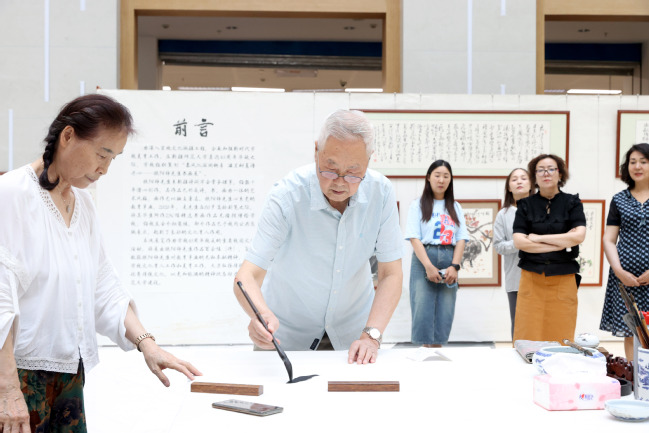 欧阳铮先生在开幕式上讲话和接受专访时表示,他将数十年潜心创作的作品捐赠给新疆师范大学,旨在传承和弘扬中华优秀传统文化,让莘莘学子更深切感受中华美学的独特魅力,激励他们努力成为堪当民族复兴大任的时代新人。开幕式结束后,老先生在现场进行了书法创作,并将作品赠予参加开幕式的教师代表。