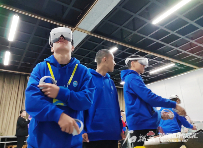 4月15日,2024年“汉语桥”上海合作组织国家青年学生春令营营员在新疆师范大学体验虚拟现实设备。