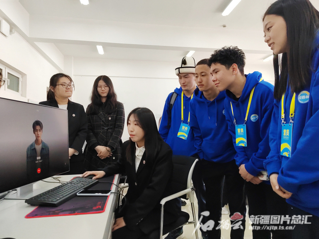 4月15日,2024年“汉语桥”上海合作组织国家青年学生春令营营员在新疆师范大学参观人工智能技术应用。