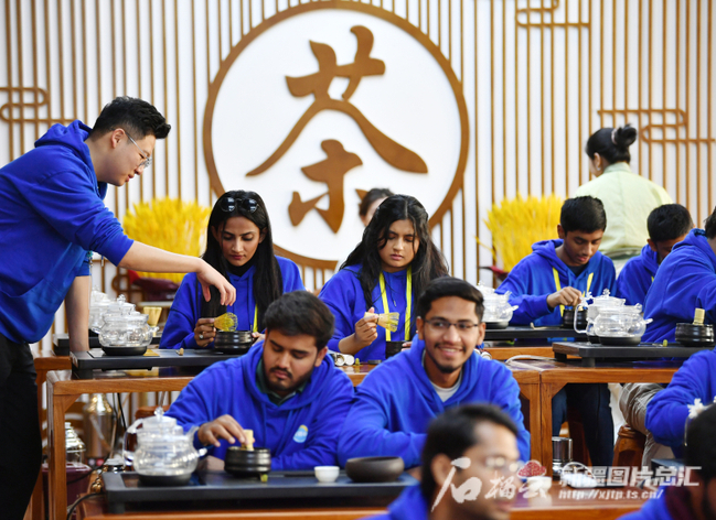 4月15日,2024年“汉语桥”上海合作组织国家青年学生春令营营员在新疆师范大学体验茶艺。