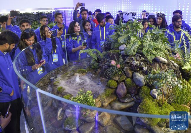 4月15日,参加春令营的来华青年学生在新疆师范大学生命科学学院北鲵馆参观。