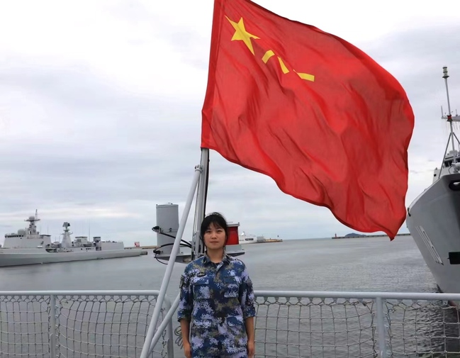 两年的军旅生涯可以说是我人生长河中不可磨灭的回忆,我很自豪能把人生最美的年华献给祖国,这身海洋蓝将永远镌刻在我青春的纪念册上。我曾参与“海军红蓝对抗演习”,积极响应习近平总书记提出的增强军队实战化水平的号召。身为大学生士兵的我,与光荣、威武、坚毅同在,在艰苦的环境中默默付出,获得“舰共比武获得第三名”的荣誉。