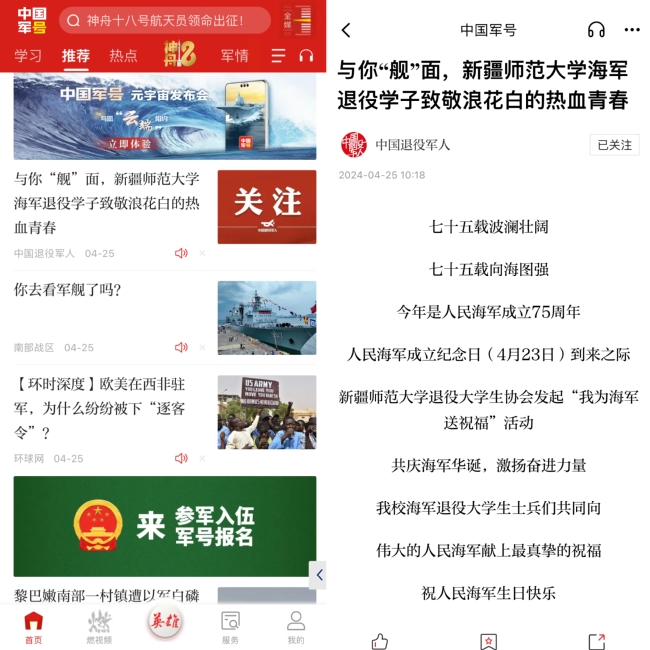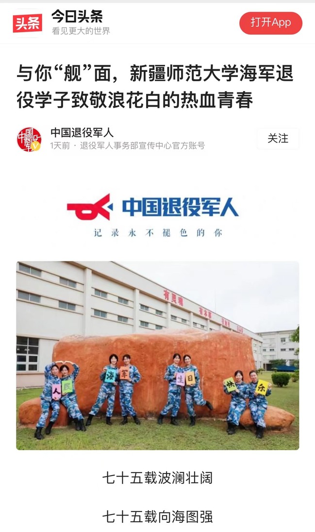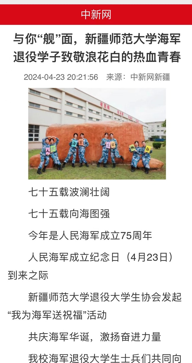 新疆师范大学退役大学生协会发起“我为海军送祝福”活动
